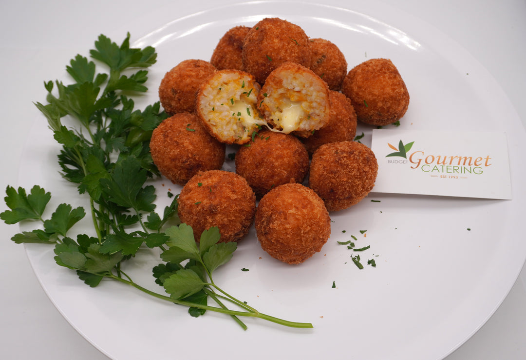 Delicious Vegan Arancini created with flavourful pumpkin and sage risotto, coated in a crunchy crumb.