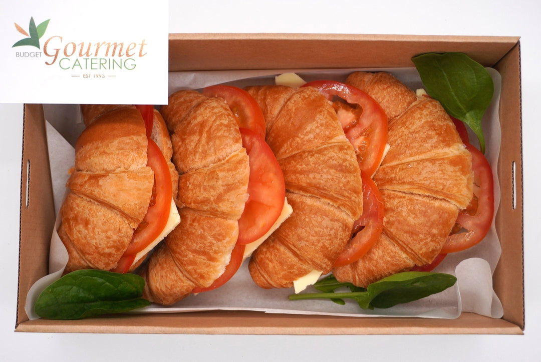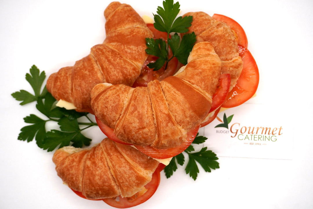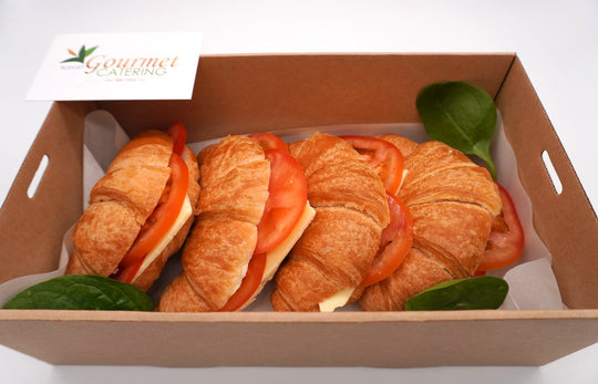 Enjoy the flaky, buttery taste of our assortment of savory croissants, available in orders of 15 or more. Choose from Ham & Cheese or Tomato & Cheese (vegetarian) options.